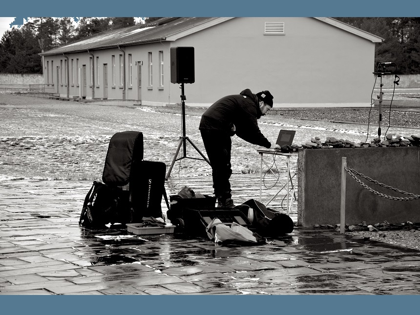 Musik in Konzentrationslagern und dem historischen Hintergrund des „Jüdischen Todessang“. In dieser Phase des Projektes entstand ein beachtliches Netzwerk um den Künstler, in dem er immer wieder neue Offenheit für Unterstützung erfuhr. Nicht zuletzt auch durch Ihre Stiftung. Die meiste Zeit der Recherche und der Konzeptualisierung seiner Arbeit verbrachte der Künstler in der Residenz des Kunstvereins Global Forest in St. Georgen im Schwarzwald. Im Januar 2021 war der Künstler eine Woche in Berlin und arbeitete 4 intensive Tage in der Gedenkstätte Sachsenhausen. Dort wurden Field Recording Samples und Hallraumaufnahmen (Impulsantworten) produziert, die mit dem Gesang Kulisiewiczs als klangliche Grundlage seiner kompositorischen Arbeit dienten. Die musikalische Produktion seiner Arbeit wurde im Tonstudio – Die Klangschärferei – in Villingen-Schwenningen realisiert. Die Visuellen Anteile der Komposition produzierte der Künstler ebenfalls in Villingen-Schwenningen. Die gesamte Installation wurde von Leguy-Madžar mit Unterstützung der Projektpartner*innen vom 12. Bis zum 17. Juni 2021 auf dem Gelände des alten Schlachthofs Schwenningen realisiert. In der Umgebung des Schlachthofgeländes und den dazugehörigen Fabrikhallen der Firma Haller Industriebau fand vom 17. bis zum 20. Juni 2021 das Medienkunstfestival „Instandsetzung #2 – Mehr Licht. Mehr Kunst. Mehr Mut“ statt, welches als Rahmen für die Präsentation der Arbeit „25.149 – Reenacting Kulisiewicz“ diente. In dieser Phase des Projektes wurden die Metallstelen und Aufhängungen für die Installation zusammen mit der Firma Haller angefertigt. Die Projektionsflächen und deren Aufhängungen gebaut und die gesamte, im Vorfeld digital vorbereitete visuelle und auditive Arbeit an die räumlichen Gegebenheiten angepasst und umprogrammiert. Hierfür wurde ein Teil einer Fabrikhalle auf dem Areal mit Folie verdunkelt, die Mehrkanal PA Installiert und eingerichtet, die Installation gebaut und die Projektoren eingerichtet um die Installation am 17.06.2021 den Adressat*innen zugänglich zu machen.