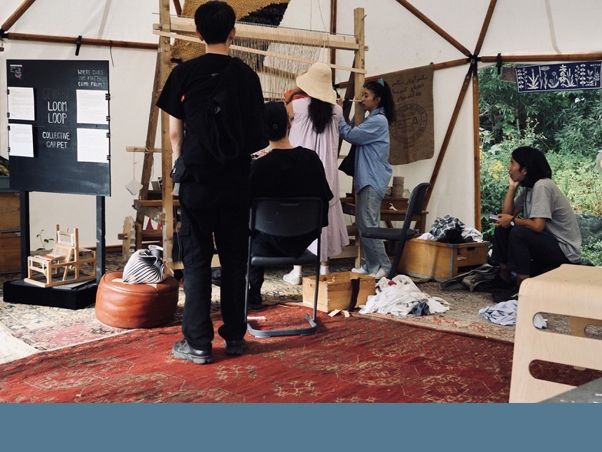 Der LOOM-LOOP als eine interaktive Installation beschreibt einen Web-Rahmen, der zum aktiven gemeinsamen Schaffen einlädt. Das Projekt fand 100 Tage lang während der documenta fifteen in Kassel im Sommer 2022 statt. Viele unterschiedliche Menschen erschufen ein kollektives Kunstwerk, das sich in einem 20 Meter langen Textil-Stück manifestierte.