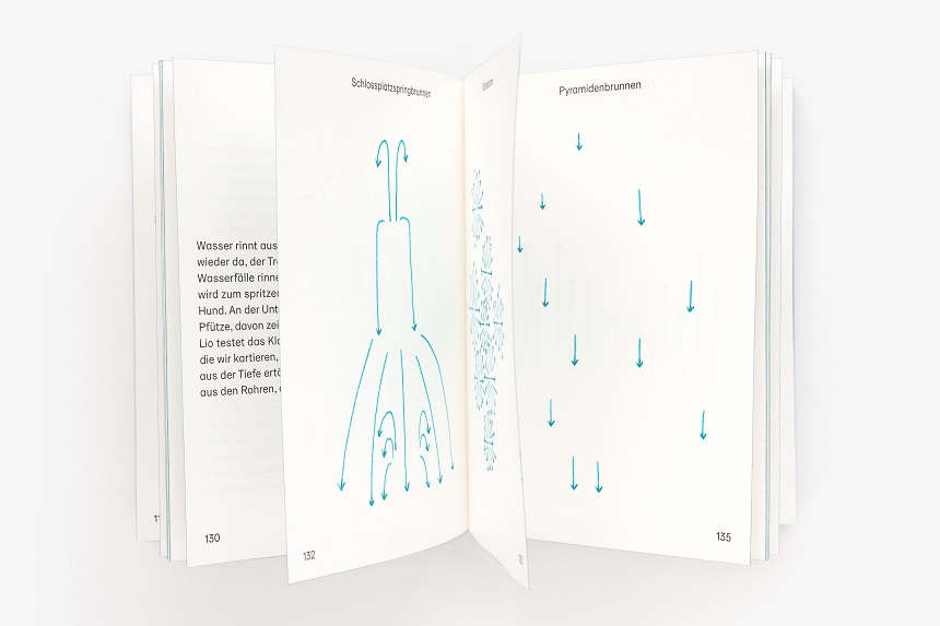 Nach einem Sommer der Recherche zu Stuttgarts Wasser fließten die Ergebnisse in ein Künstlerbuch: Ein Logbuch, das die Reise zum Wasser chronologisch dokumentiert. Es versammelt 140 experimentelle Texte, Brunnengedichte und Wasserträume von Christina Schmid und 100 Wasserzeichnungen und Brunnenchoreografien von Aida Nejad, mit einem Vorwort von Jan Snela. Eine handgezeichnete Wasserkarte liegt als Lesezeichen lose im Buch. Sie verzeichnet die Mineralquellen, Brunnen, Flüsse, Bäche, Seen und Bäder in Stuttgart. Hier wird der Reichtum wie die Sehnsucht sichtbar.