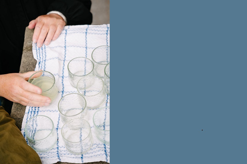 Bei den performativen Trinkpausen gab es zum Brunnenwasser selbst hergestellten Sirup in eigens kreierten Gläsern: geköpfte Mineralwasserflaschen.