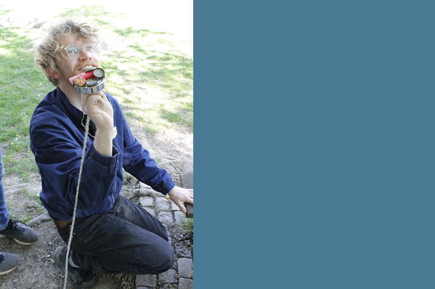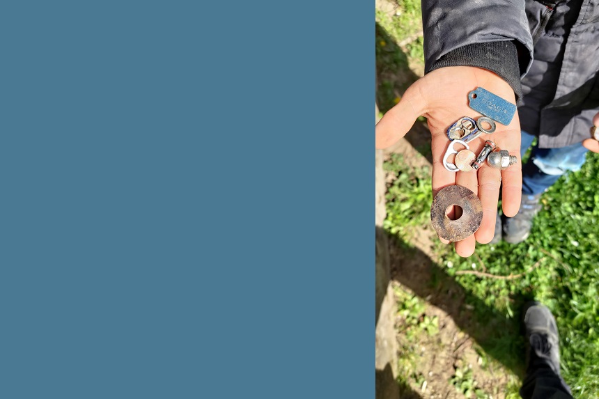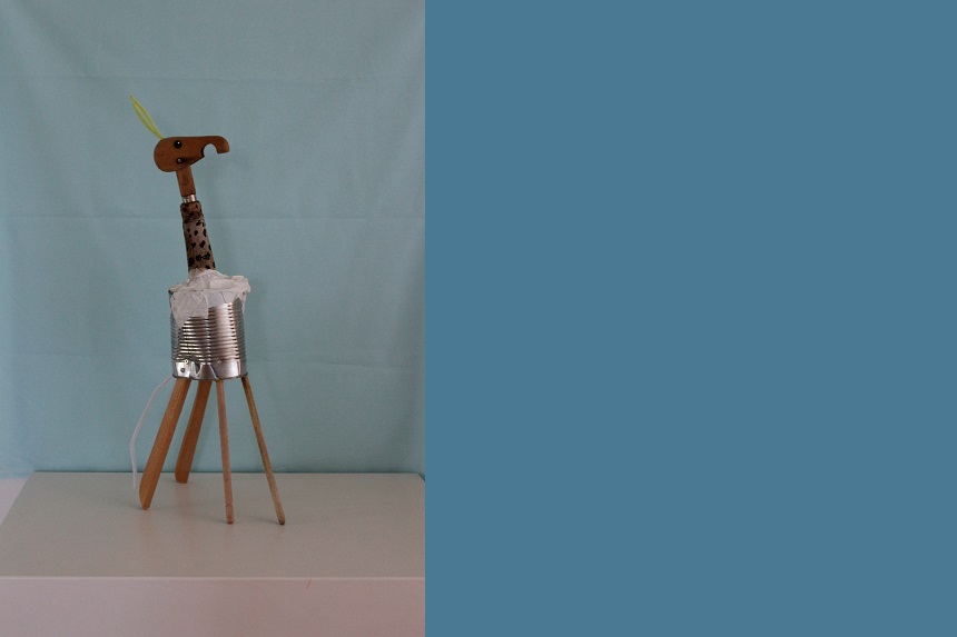 Neben den von den Kindern gesammelten Fundstücken brachte der Künstler selbst Gegenstände zum Verarbeiten aus seinem Fundus mit, um die Umsetzung einer praktischen künstlerischen Arbeit für alle zu garantieren.