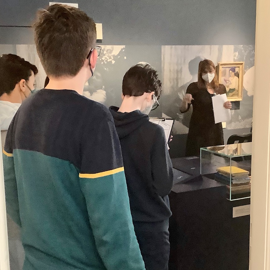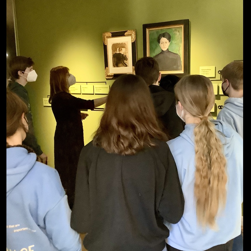 2021/22 kam es dann doch noch zu zwei Besuchen in der Schule durch die Kunstvermittler*innen und zu drei Besuchen der Schüler*innen im Museum August Macke Haus.
