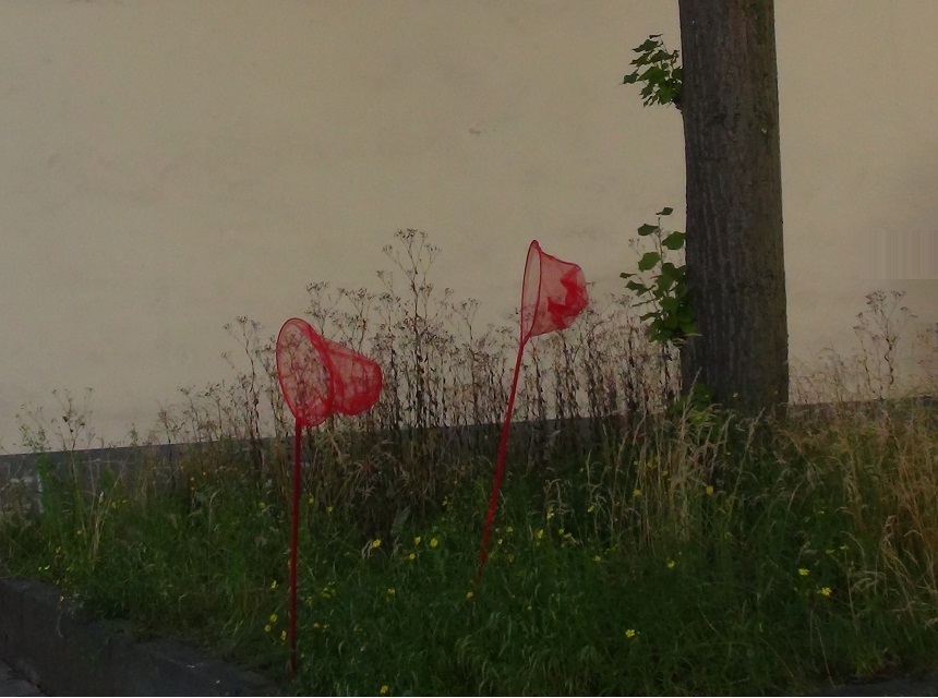 Es ist ein spannendes Projekt, was ich gerne fortsetzen möchte und auch die Ergebnisse an weiteren Plätzen präsentieren würde wollen. Es war eine so erlebnisreiche Kommunikation. Wichten den alten Menschen, die während dem Interview auch sich selbst neu erinnerten, und mir z.B den Text von Hermann Hesse. Wanderungen empfahlen, der mit einem anderen Text, den ich seit den 1990zigern immer wieder benutze – über Träumen und Wandern (aus der indischen Mythologie) und erst jetzt bemerkte ich, wie sehr Hesse (seine Mutter war in einer Mission in Indien geboren) seine Narrativen aus diesen Kulturen (er formulierte schon sehr früh für sich eine ‚multikulturellen‘ Identität), dass wurde mir erst jetzt klar, als ich beide Texte auf die Tische legte, verbunden durch die Schmetterlinge -Thema in den Texten – und die Schmetterlingsnetze als Teil der Inszenierung _ was ist Kommunikation und wie entstehen Dialoge, gerade mit alten Menschen, deren Erinnerung stark geprägt ist, durch den Krieg. Mit den gesprächen über Bäume trat ich ein in etwas – was sie schön + sorgenfrei erzählten.