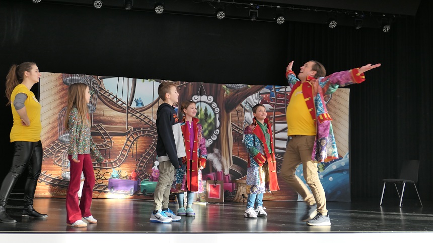 Drei Tage lang wurde von morgens 8 Uhr bis mittags 12 Uhr in den verschiedenen Gruppen gearbeitet. Den Abschluss jedes „Arbeitstages“ bildete eine Präsentation der Tagesergebnisse, so dass alle wieder den gleichen Kenntnisstand über die Fortschritte mit nach Hause nehmen konnten. Am vierten Tag stand dann schon die Generalprobe auf dem Plan und wie wichtig diese ist, haben dabei alle eindrucksvoll erfahren können. Auf einmal fügte sich alles ganz wunderbar zu dem großen Ganzen zusammen, die Licht- und Tontechnik kam zum ersten Mal zum Einsatz, denn auch der Umgang mit Scheinwerferlicht und Mikrofon muss geübt werden. Nach der Generalprobe gab es die Abschlussbesprechung mit Korrekturen und kleinen Änderungen.